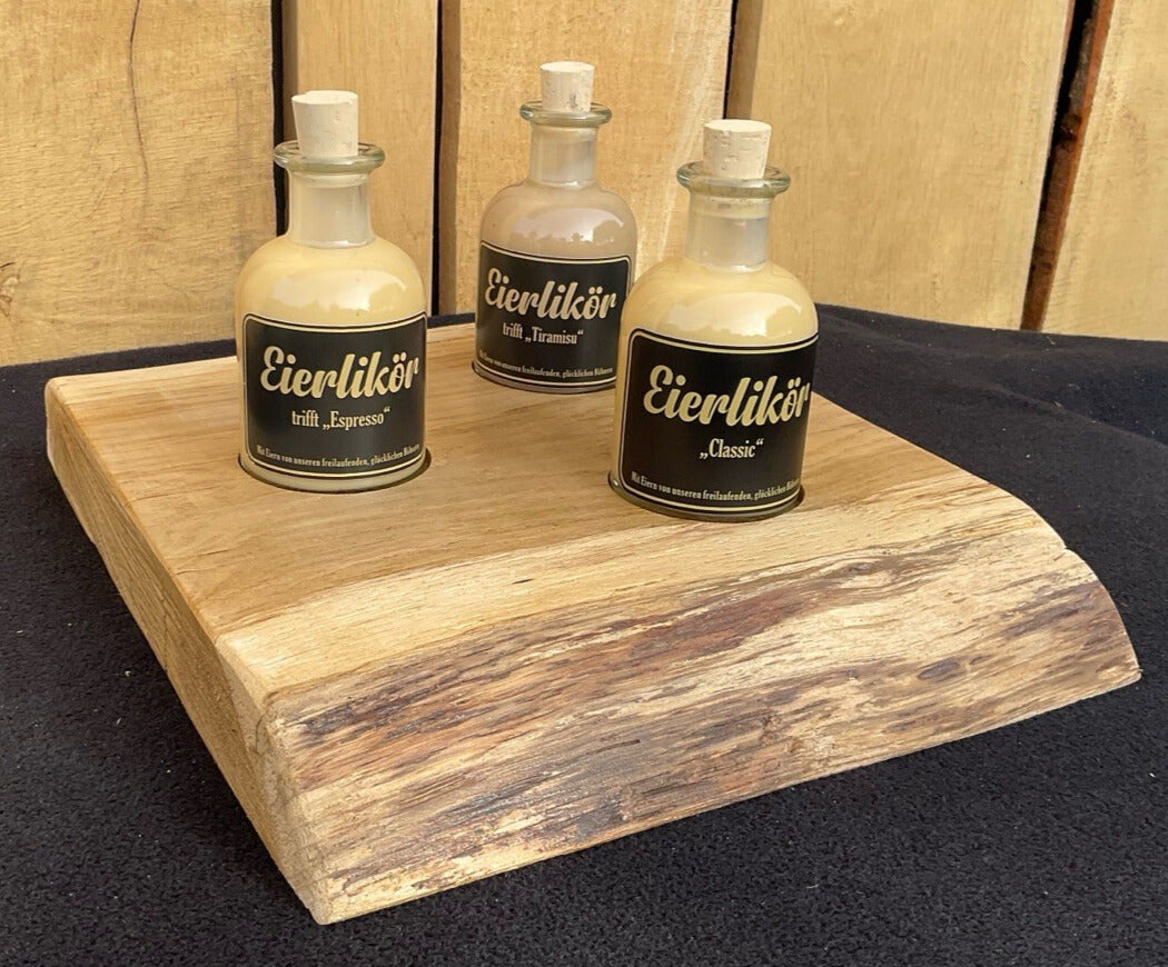 Hinweis zur Dekoration Die abgebildete Dekoration dient als Inspiration und ist nicht Teil des Angebots. Verkauft wird ausschließlich das Eichenbrett mit Eierlikör.