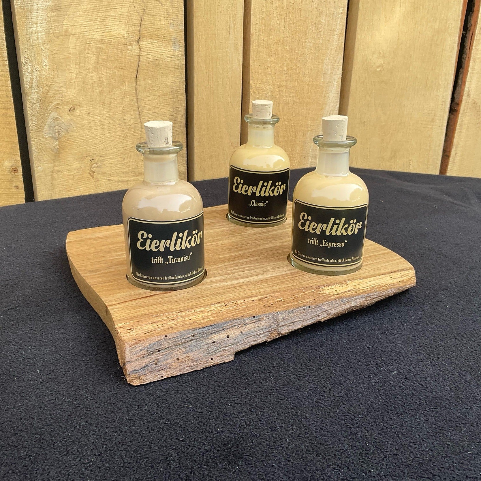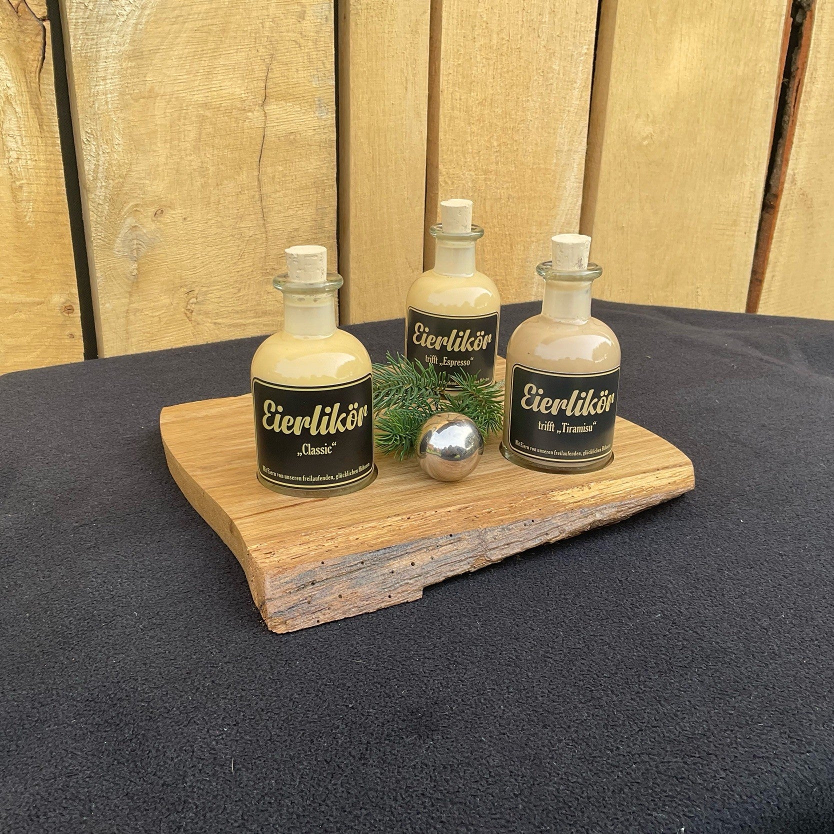 🌿 Eierlikör trifft Eiche – und ein Hauch Nachhaltigkeit Unser Geschenkset vereint Genuss, Handwerk und Stil: 🥚 Drei Sorten hausgemachter Eierlikör auf einem handgefertigten Eichenbrett – jedes Brett ein Unikat. 🍶 Und das Beste: Die Flaschen sind viel zu schön zum Wegwerfen. Nutze sie als Blumenvase, Deko oder für deine eigene Kreation – nachhaltig und stilvoll.
