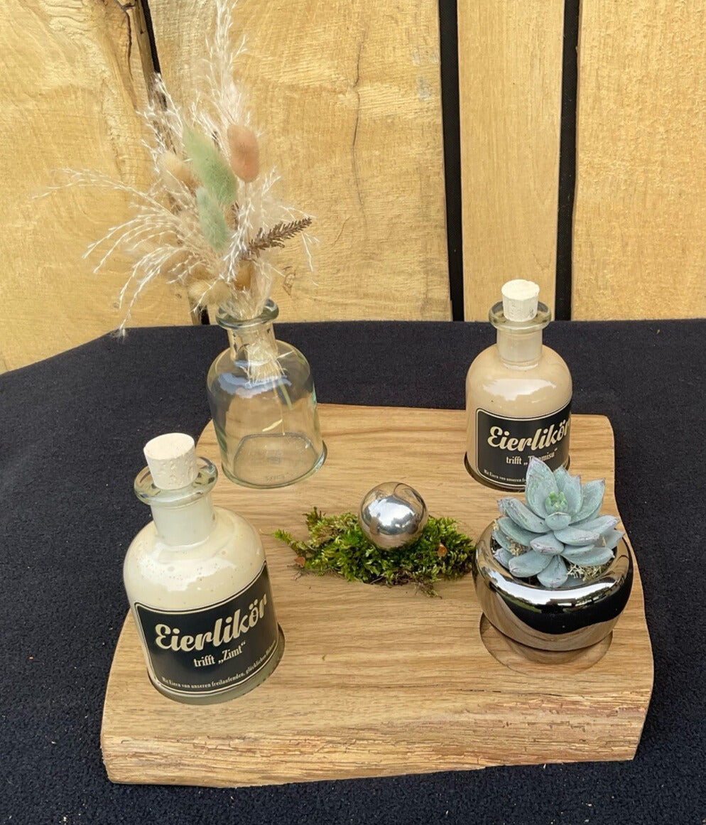 Hinweis zur Dekoration Die abgebildete Dekoration dient als Inspiration und ist nicht Teil des Angebots. Verkauft wird ausschließlich das Eichenbrett mit Eierlikör.